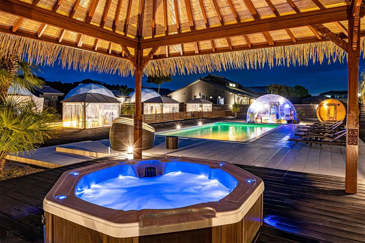 五感を刺激する「ととのい」体験: 本格サウナ、プール、ジャグジー、そして夜の焚き火。アウトドアの醍醐味が詰まった滞在が待っています。