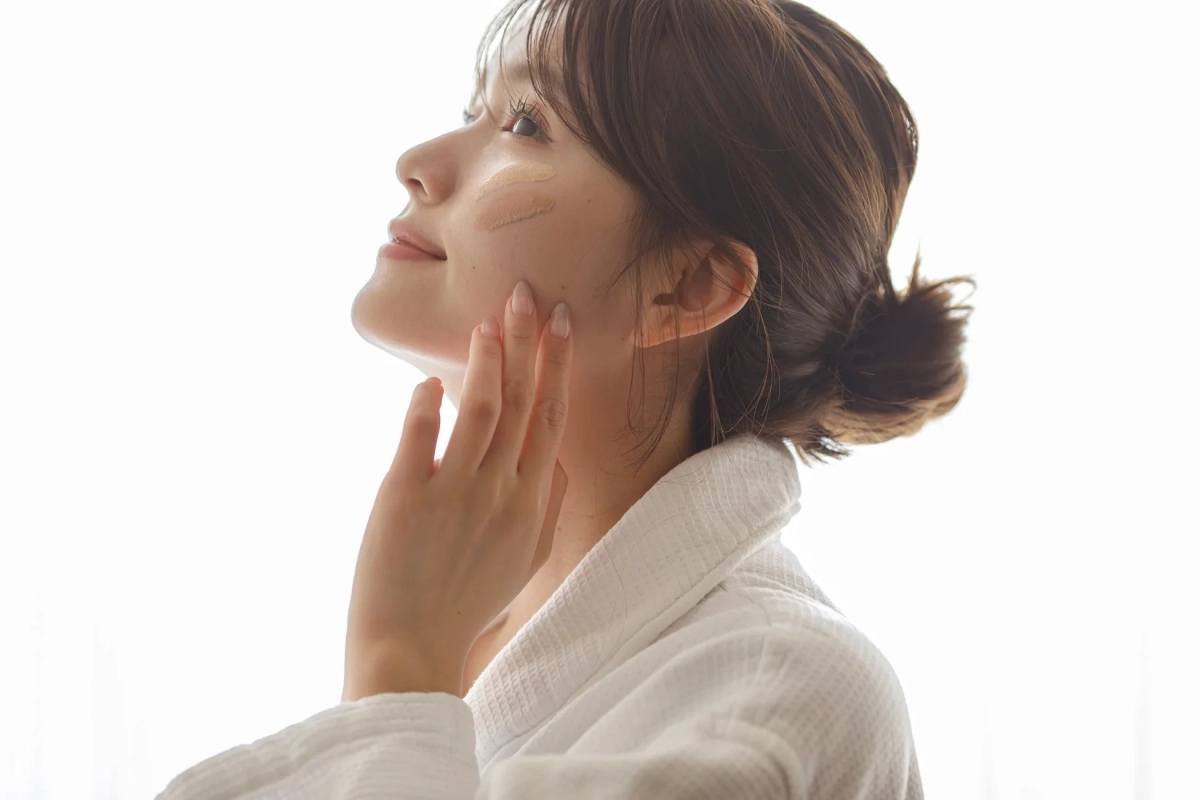 化粧水、美容液や美容オイルで肌を整えたあと適量を手に取り、顔の中心から外側に向かって塗り広げてください。ブラシやパフ等でも塗布できます。